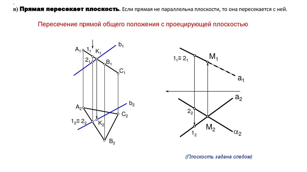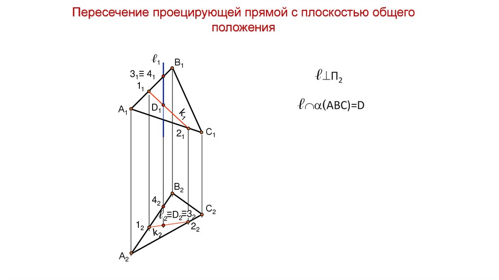 Пересечение проецирующей прямой с плоскостью общегоположения