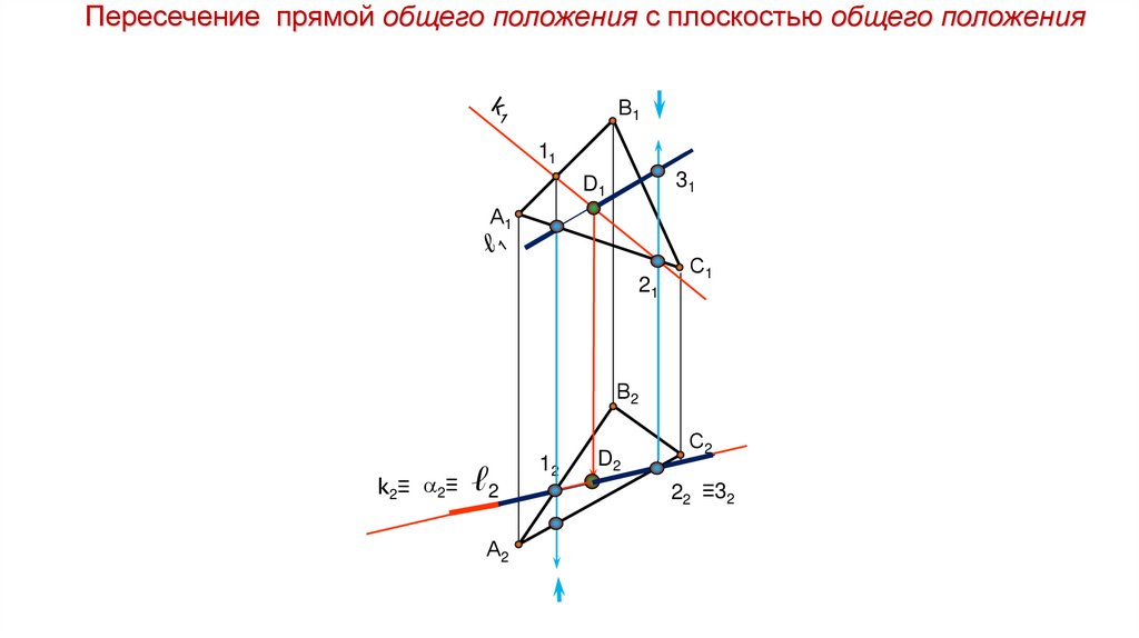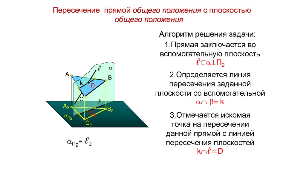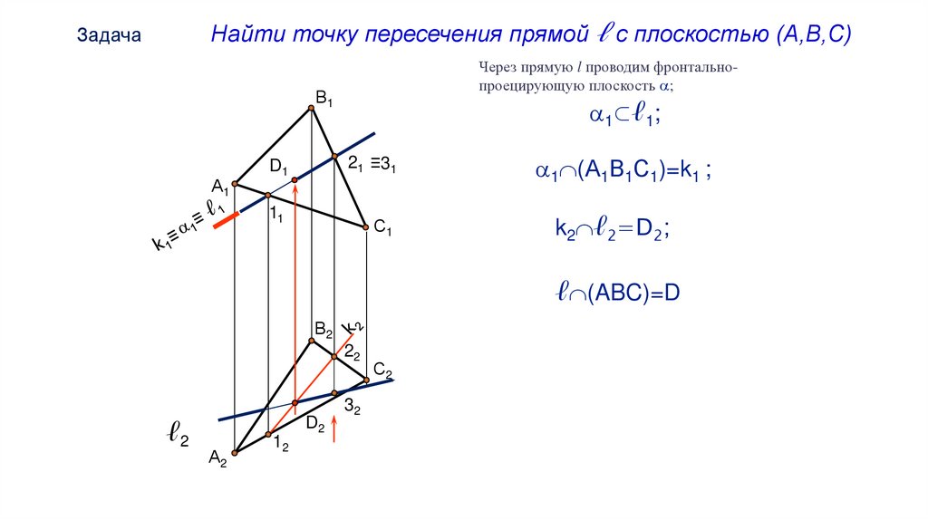 Пересечение прямой общего положения с плоскостью общего положенияВ1