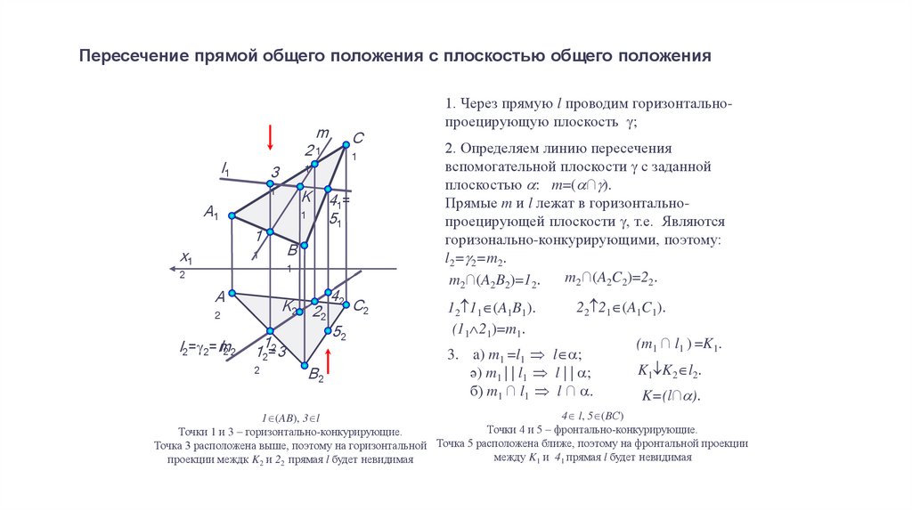 Пересечение прямой общего положения с плоскостью общего положенияm
