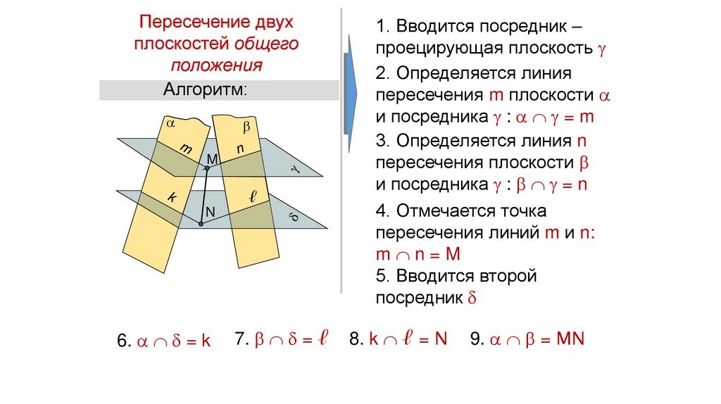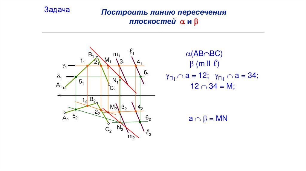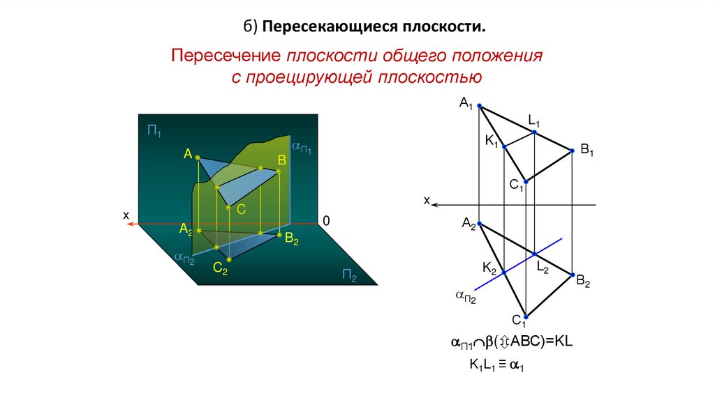 б) Пересекающиеся плоскости. Общим элементом двух пересекающихся плоскостей
