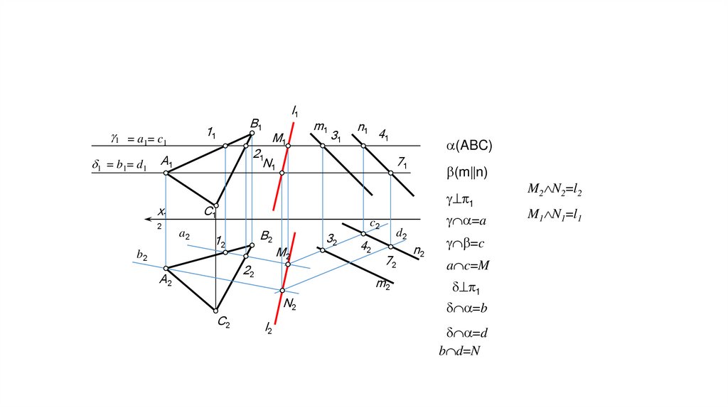 прямых должны располагаться на одной и той же вертикальной линии проекционной связи c ∩ d=B;