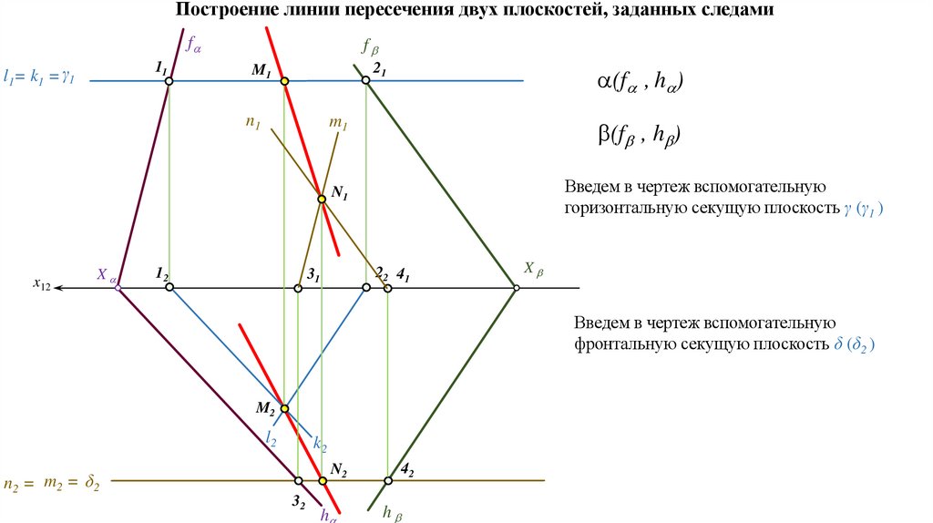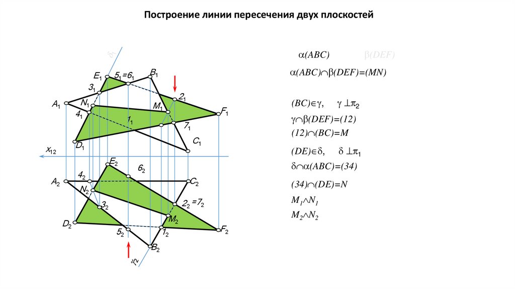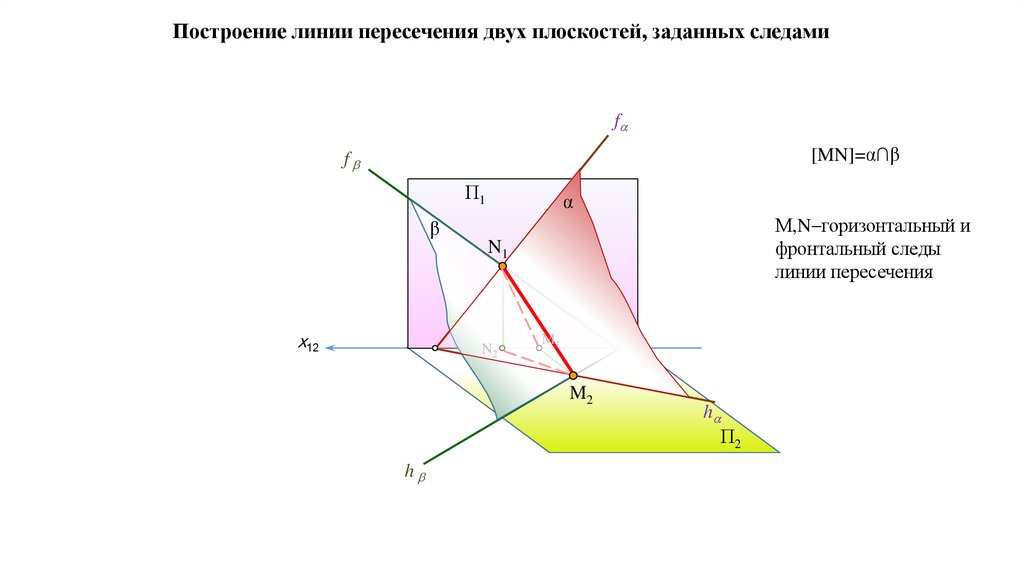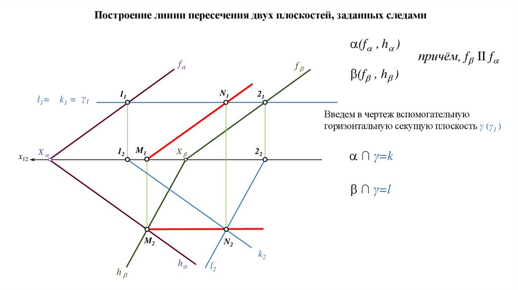 является прямая, поэтому для построения линии пересечения двух плоскостей