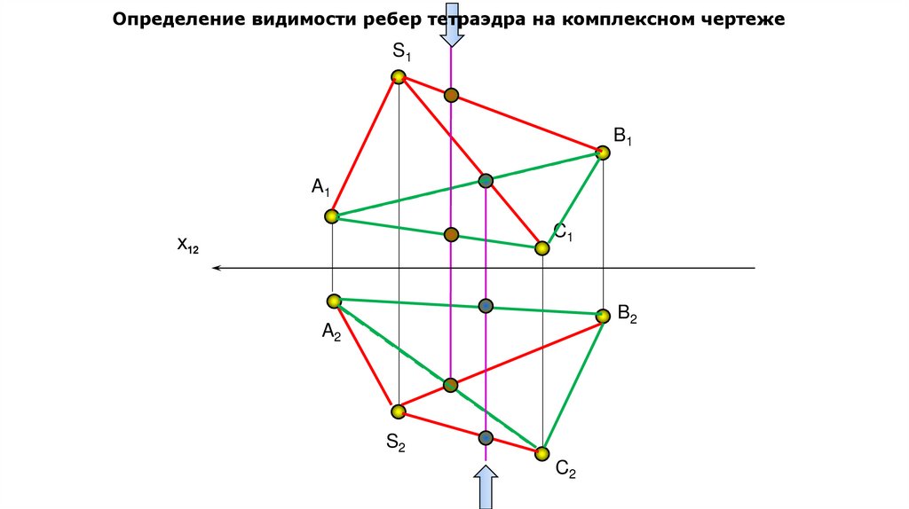 Определение видимости ребер тетраэдра на комплексном чертежеS1