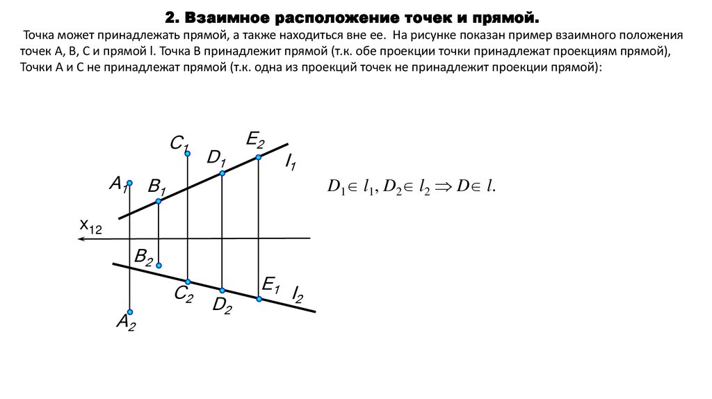2. Взаимное расположение точек и прямой;