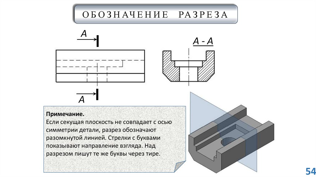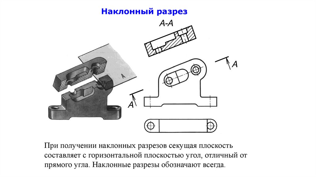 Наклонный разрезПри получении наклонных разрезов секущая плоскость