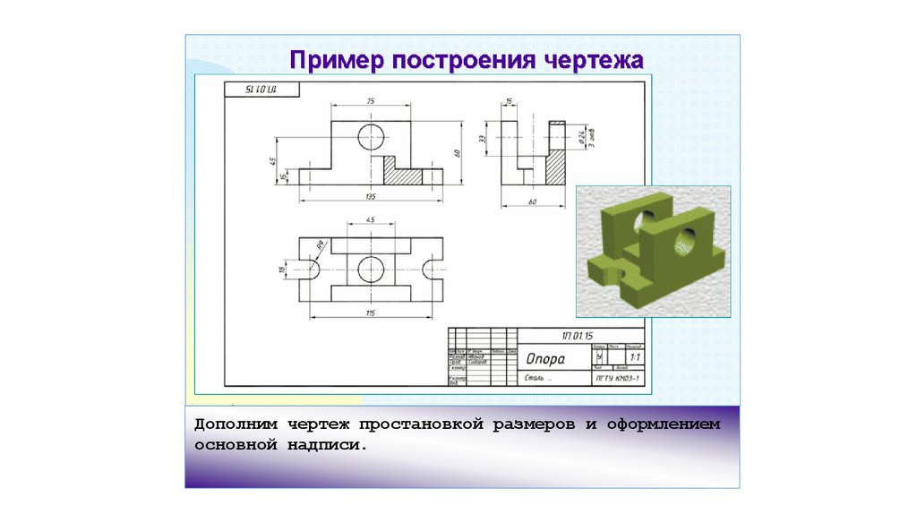 Дополним чертеж простановкой размеров и оформлениемосновной надписи.