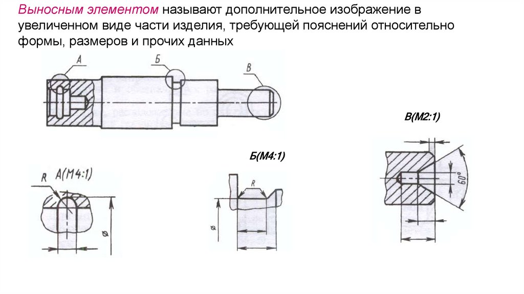 Выносным элементом называют дополнительное изображение вувеличенном виде части изделия, требующей пояснений относительно