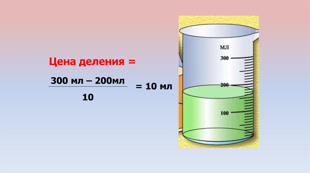 Цена деления =300 мл – 200мл