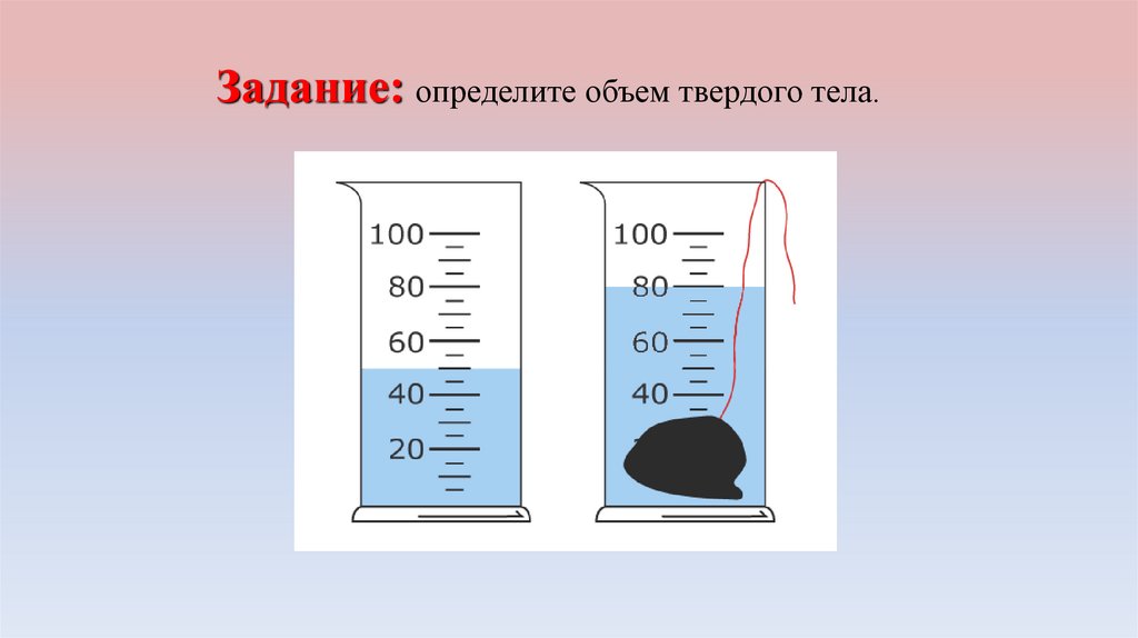 небольших твердых тел пользуются мензурками.