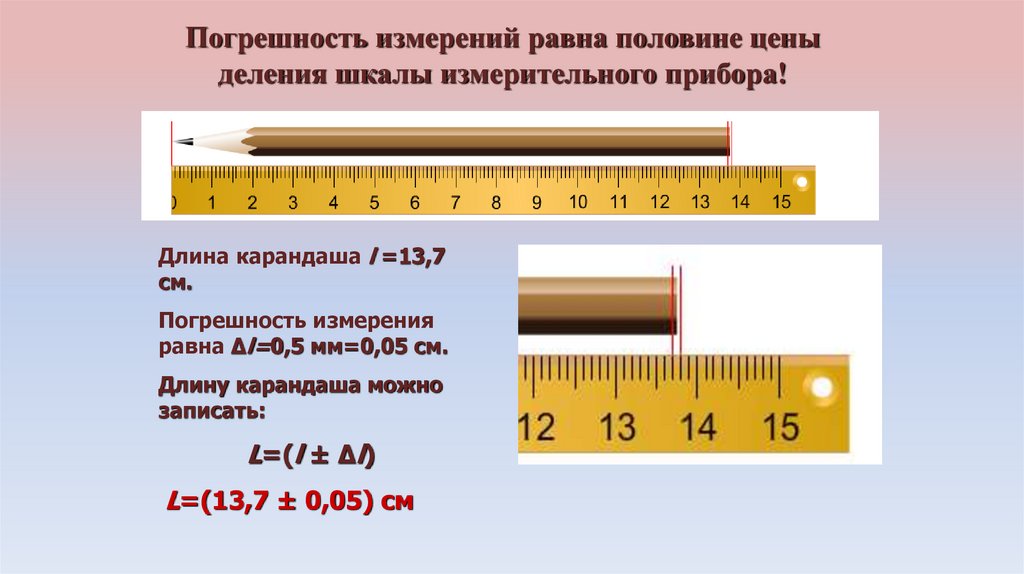 Погрешность измерений равна половине ценыделения шкалы измерительного прибора!