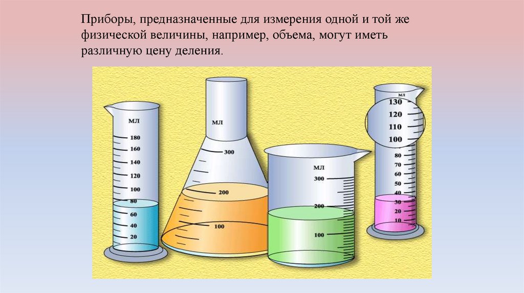 являются линейки и термометры. Для измерения объемов жидкостей и