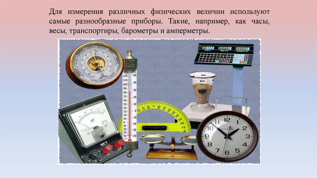 Для измерения различных физических величин используютсамые разнообразные приборы. Такие, например, как часы,