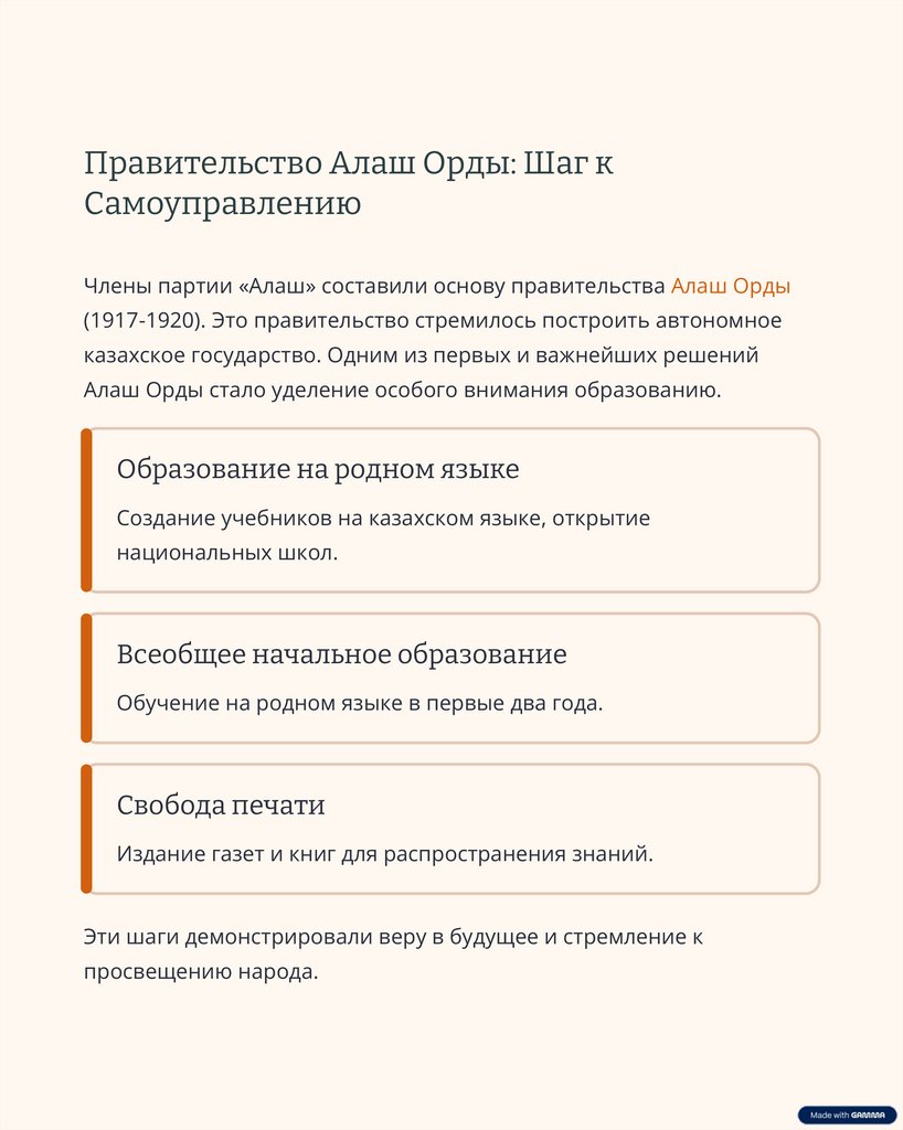 Алаш Орды стало уделение особого внимания образованию.