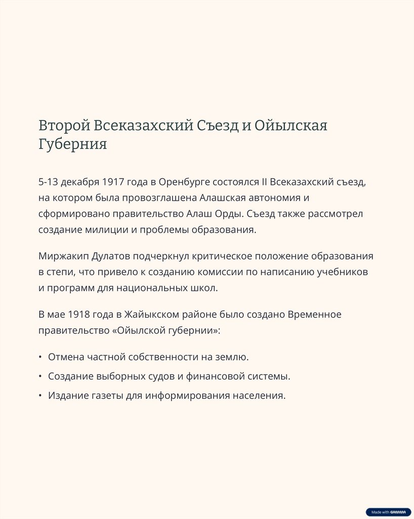 Второй Всеказахский Съезд и ОйылскаяГуберния