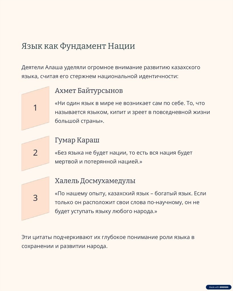 Язык как Фундамент НацииДеятели Алаша уделяли огромное внимание развитию казахского