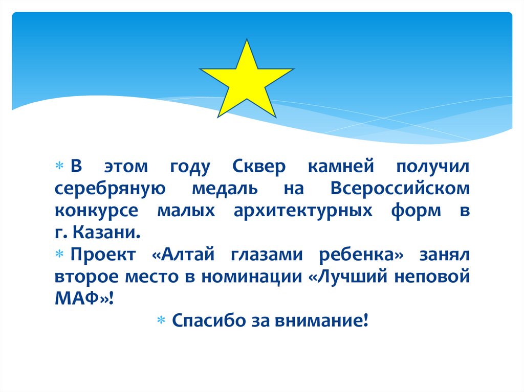 В этом году Сквер камней получилсеребряную медаль на Всероссийском