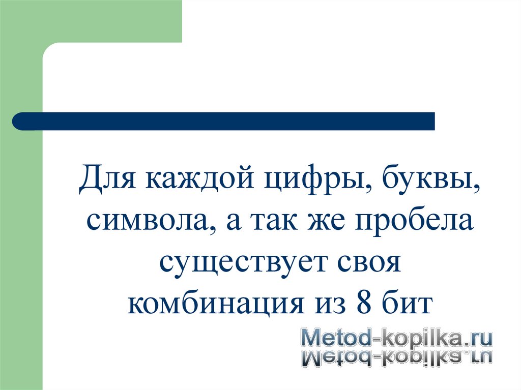 10. Одному символу присваивается код из 8 двоичных разрядов