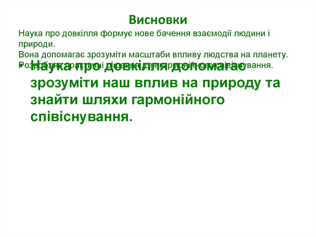 ВисновкиНаука про довкілля формує нове бачення взаємодії людини і