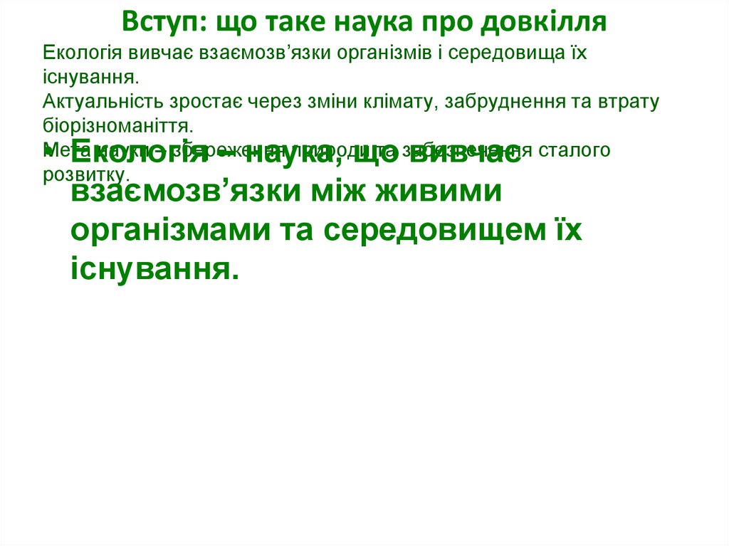 Вступ: що таке наука про довкілляЕкологія вивчає взаємозв’язки організмів і середовища їх