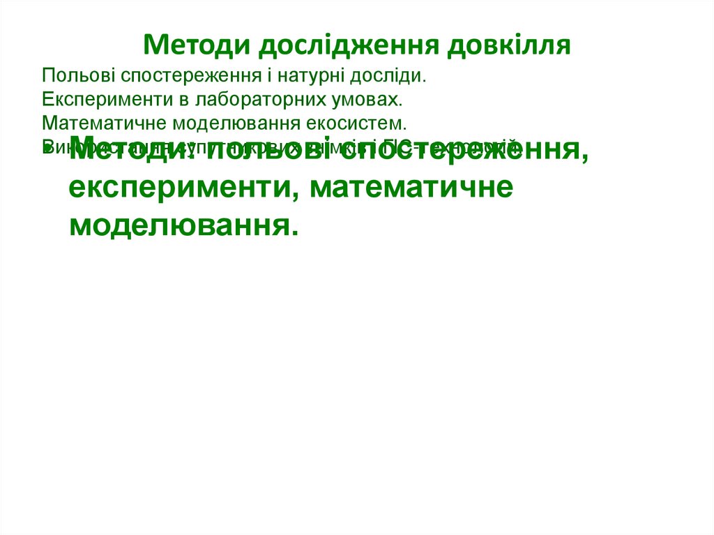 Методи дослідження довкілляПольові спостереження і натурні досліди.