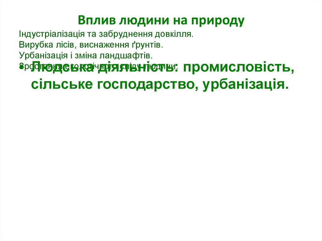 Вплив людини на природуІндустріалізація та забруднення довкілля.