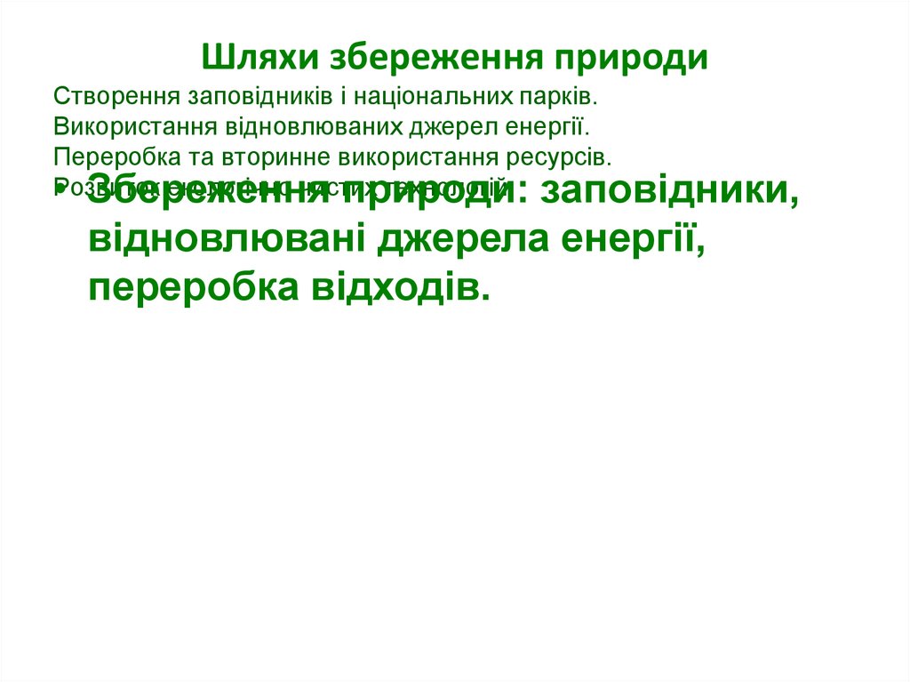 Шляхи збереження природиСтворення заповідників і національних парків.