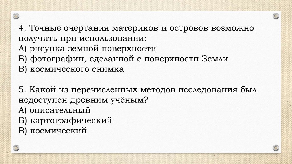 4. Точные очертания материков и островов возможнополучить при использовании: