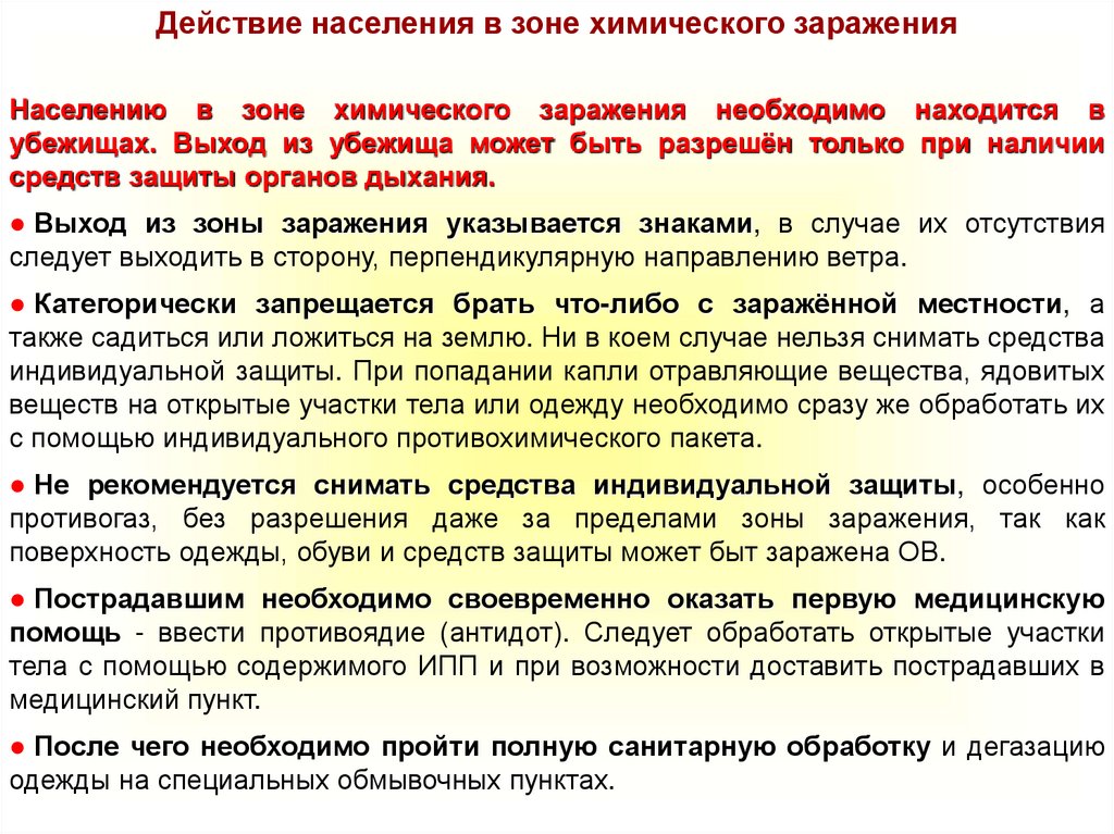 Действие населения в зоне химического зараженияНаселению в зоне химического заражения необходимо находится в