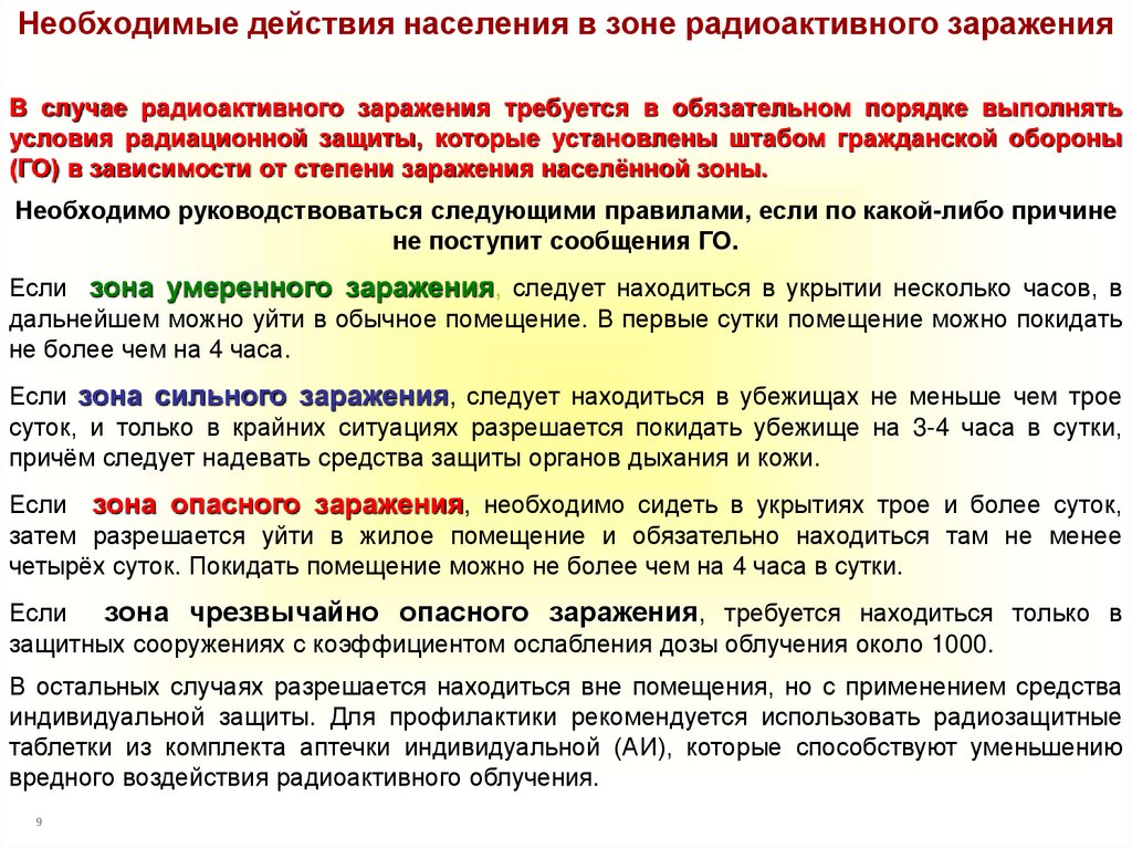 Необходимые действия населения в зоне радиоактивного зараженияВ случае радиоактивного заражения требуется в обязательном порядке выполнять