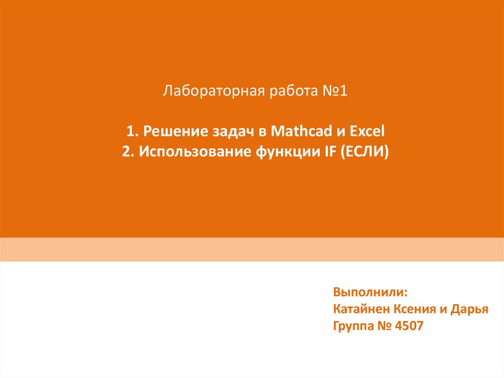 Лабораторная работа №11. Решение задач в Mathcad и Excel