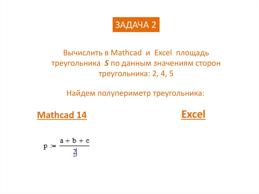 ЗАДАЧА 2Вычислить в Mathcad и Excel площадь