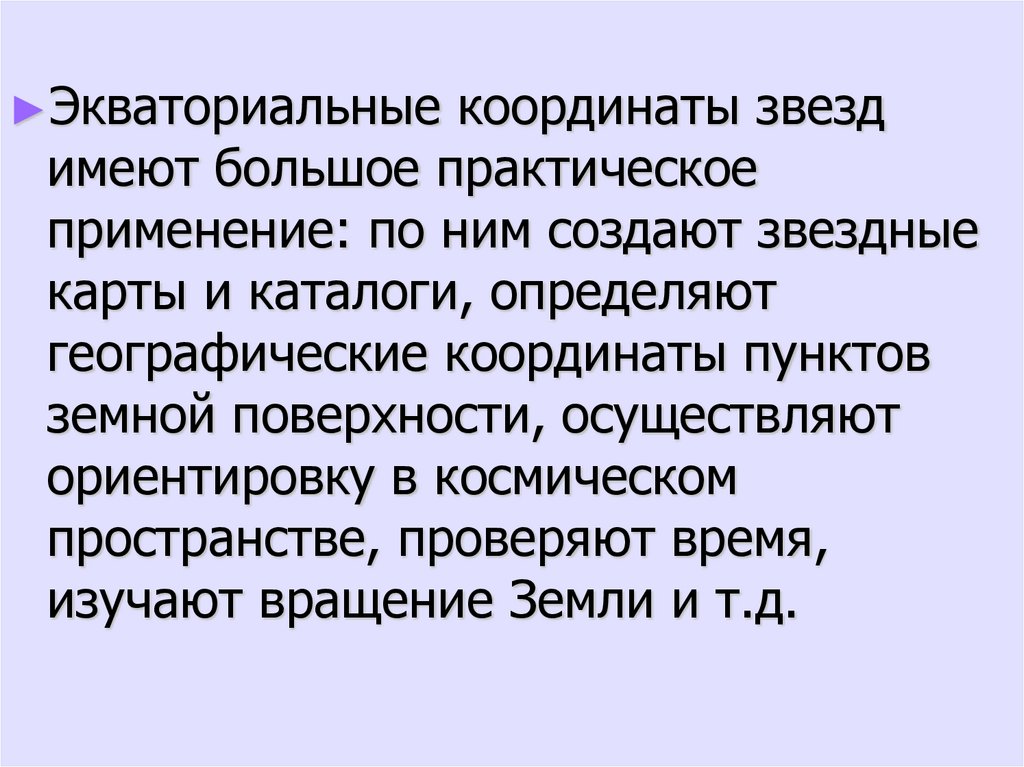 ►Экваториальные координаты звездимеют большое практическое