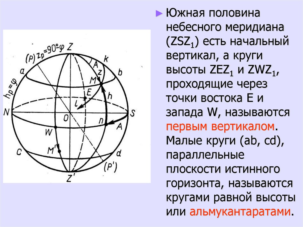 ► Южная половинанебесного меридиана