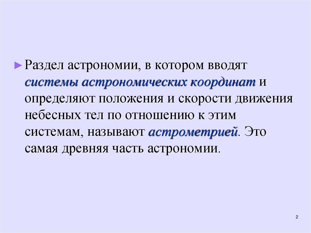 ► Раздел астрономии, в котором вводятсистемы астрономических координат и