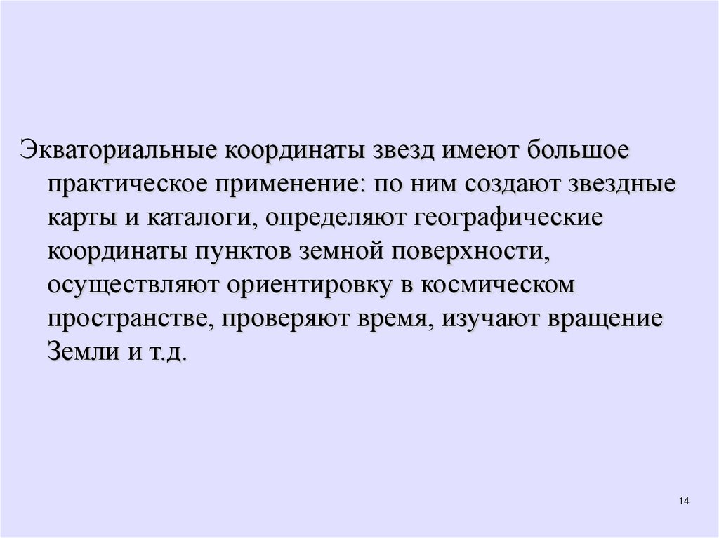 Экваториальные координаты звезд имеют большоепрактическое применение: по ним создают звездные