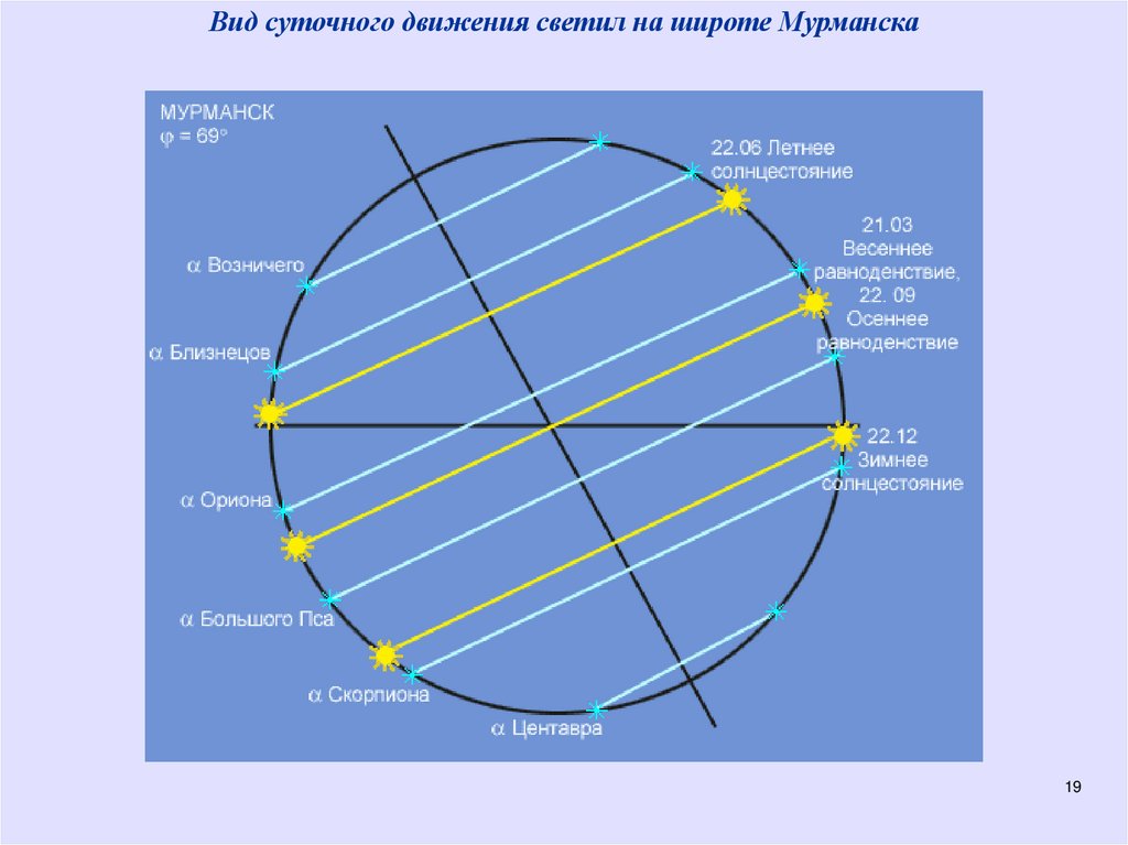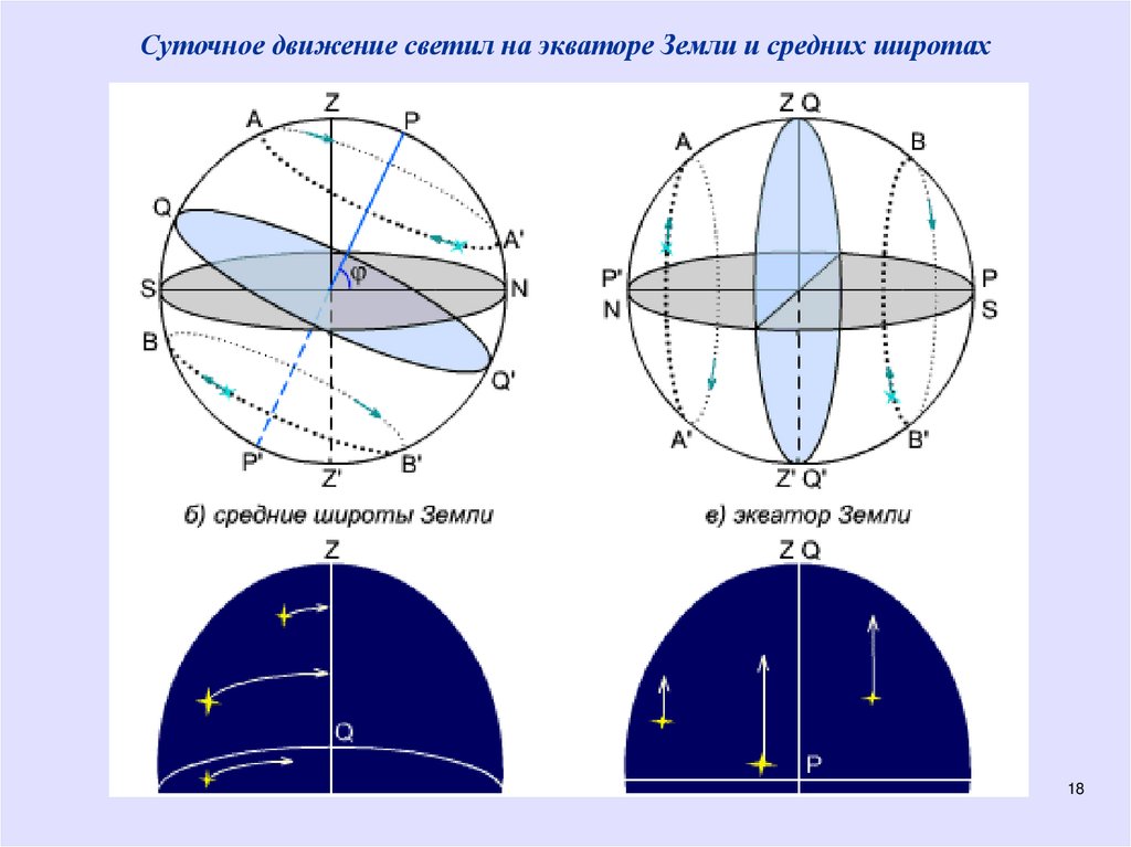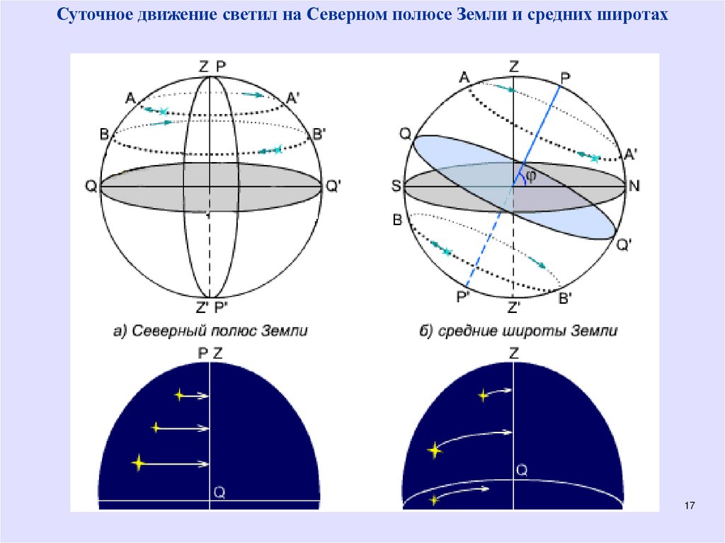 Суточное движение светил на Северном полюсе Земли и средних широтах17