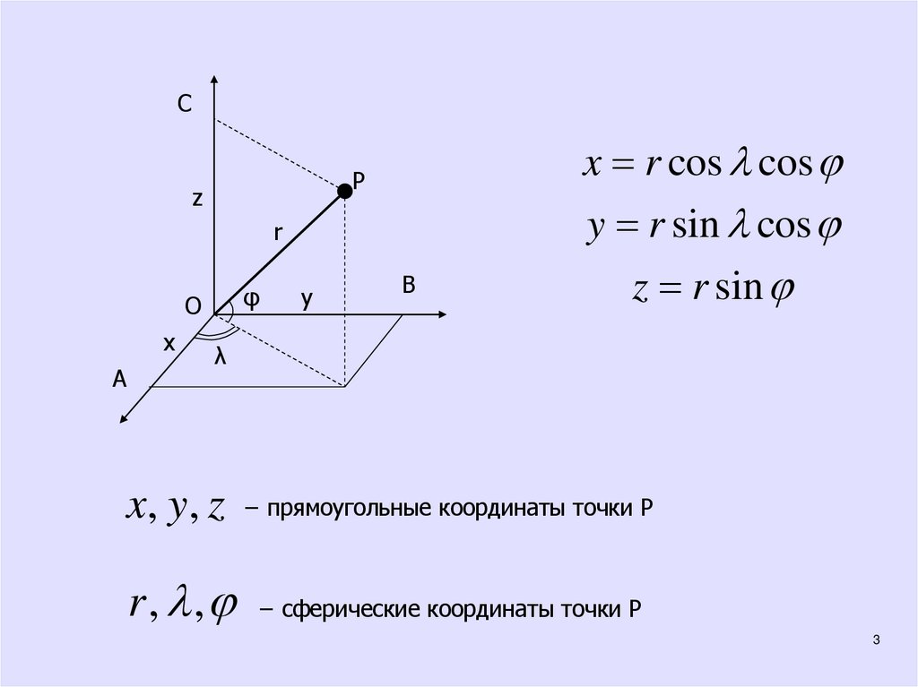 Положение точки определяется широтой (р) и долготой (А.).Широта - это угол между точкой и экватором вдоль