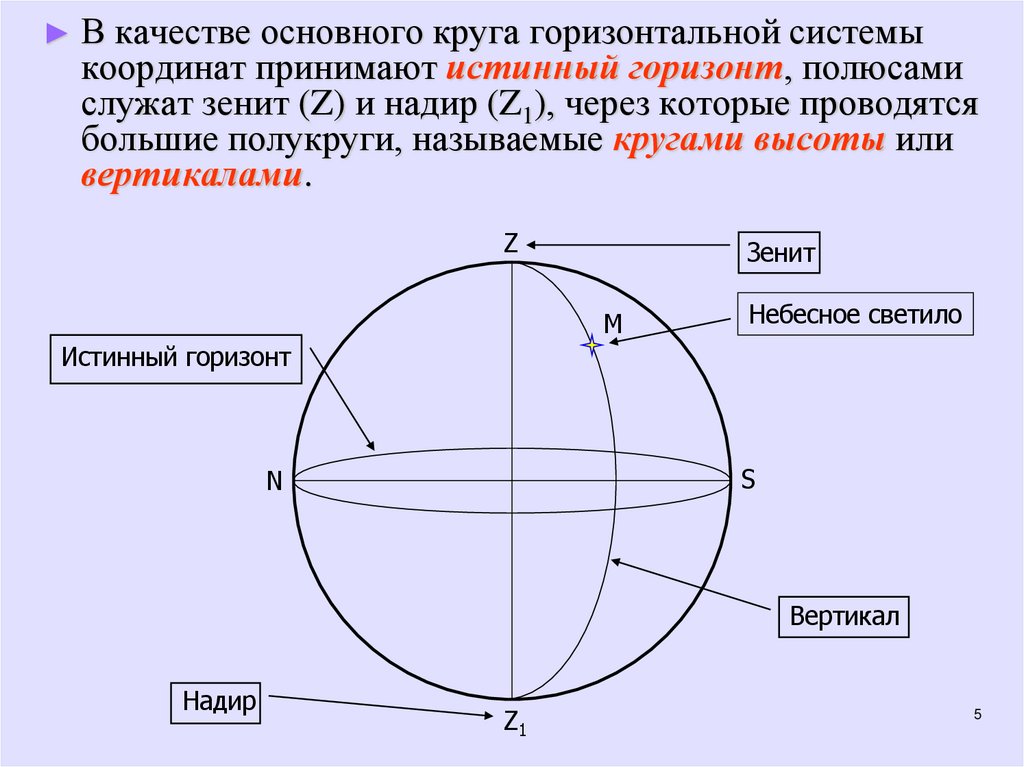 служат зенит (Z) и надир (Z1), через которые проводятся