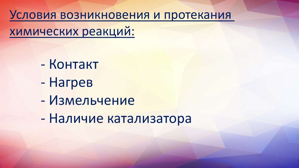 Условия возникновения и протеканияхимических реакций: