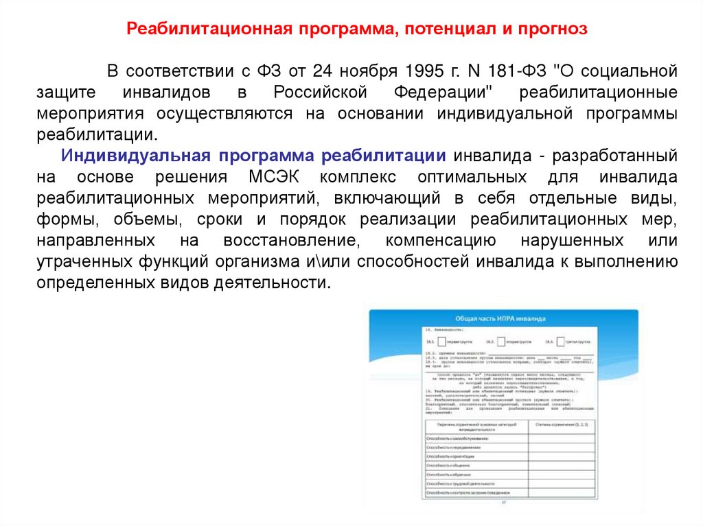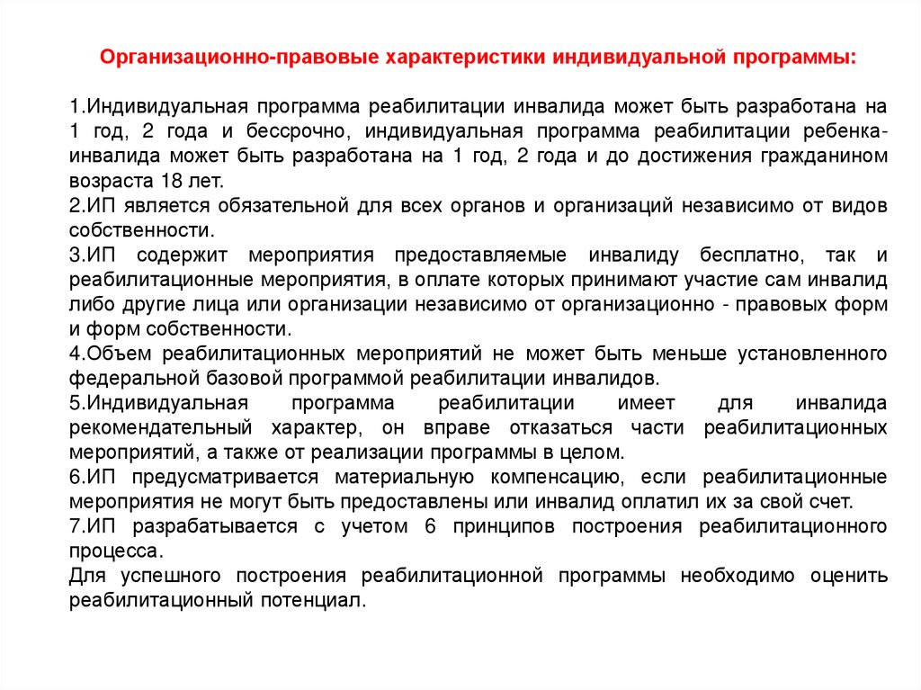 реализации индивидуальной реабилитационной программы независимо от этапов