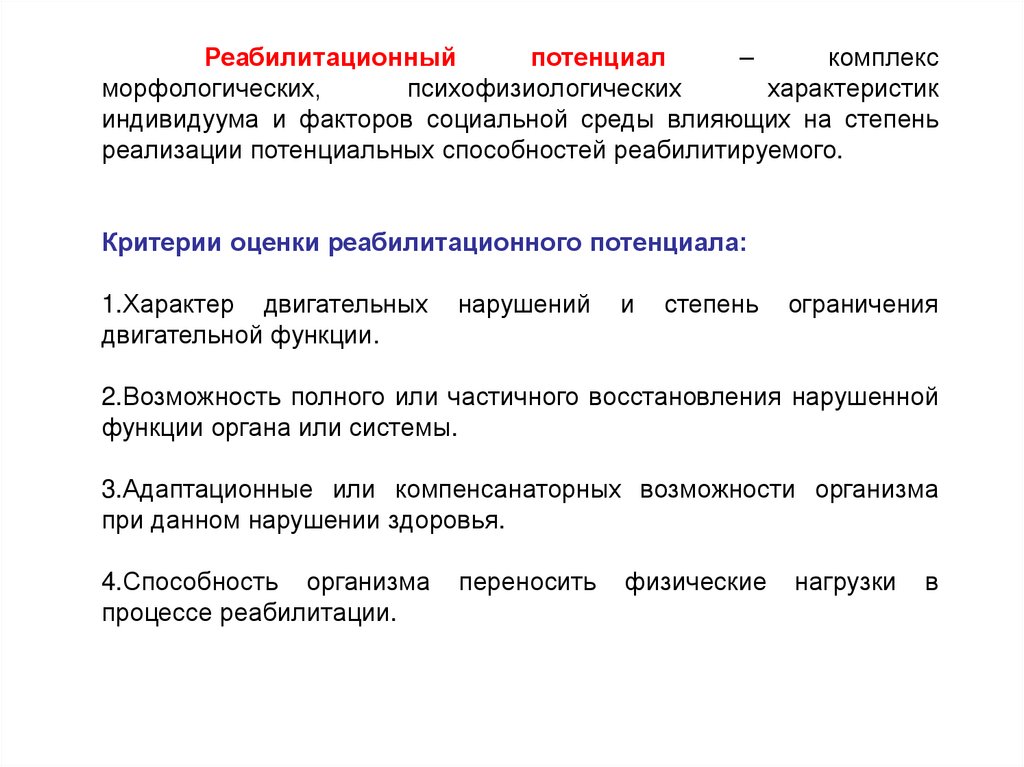 восстановление нарушенных физических и психических функций, а в случае невозможности – развитие