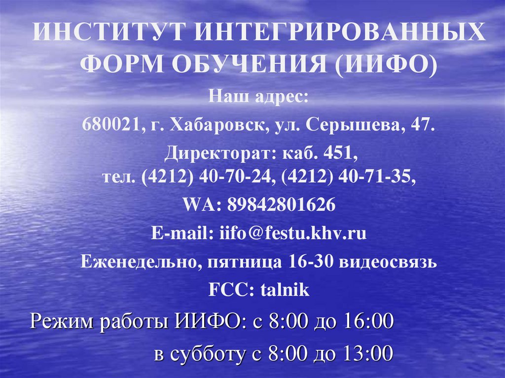 ИНСТИТУТ ИНТЕГРИРОВАННЫХФОРМ ОБУЧЕНИЯ (ИИФО)