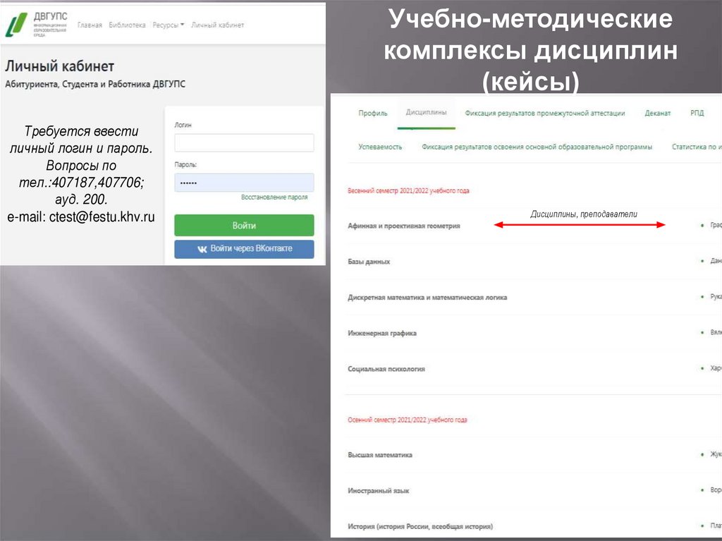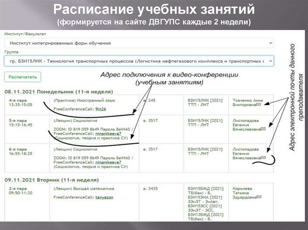 Расписание учебных занятий(формируется на сайте ДВГУПС каждые 2 недели)