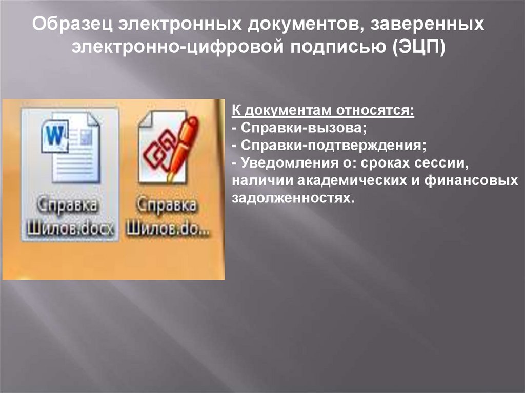 Образец электронных документов, заверенныхэлектронно-цифровой подписью (ЭЦП)