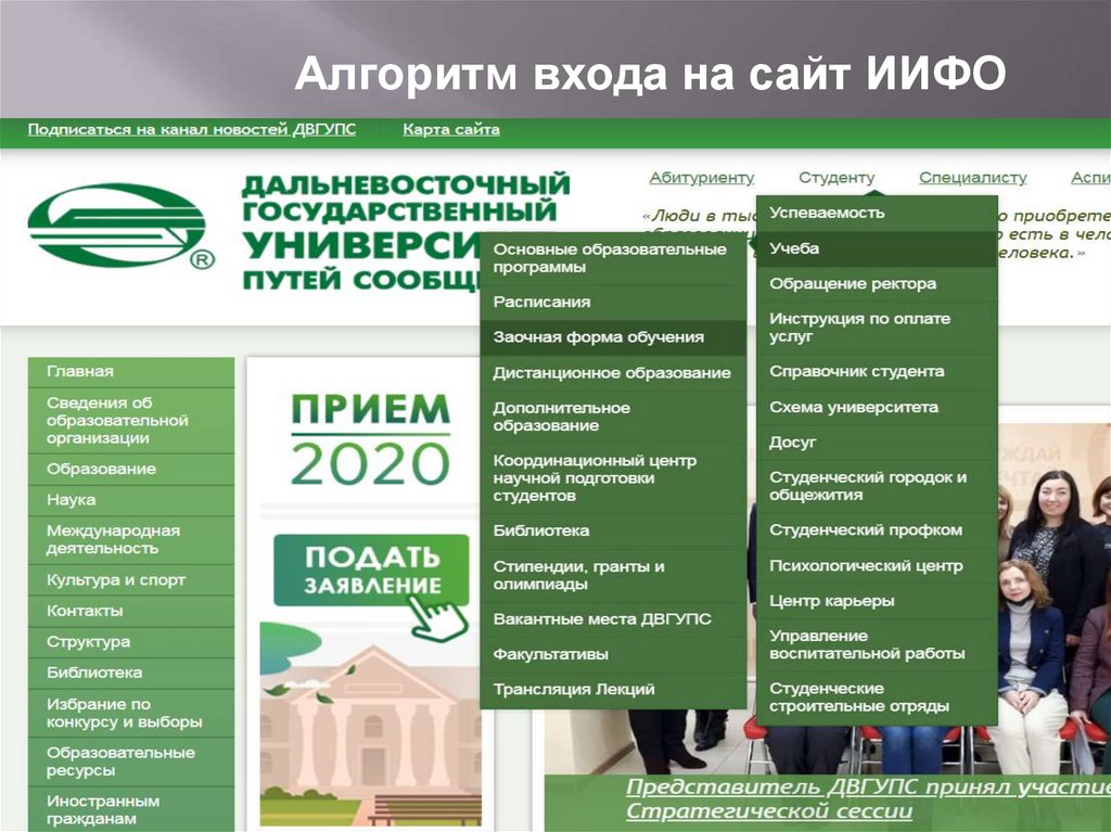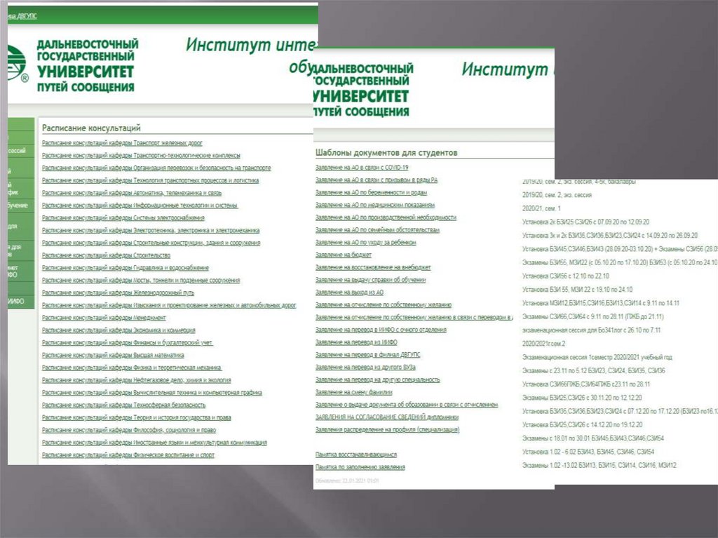 7. Расположение «Расписание занятий и экзаменов на сайте ДВГУПС»