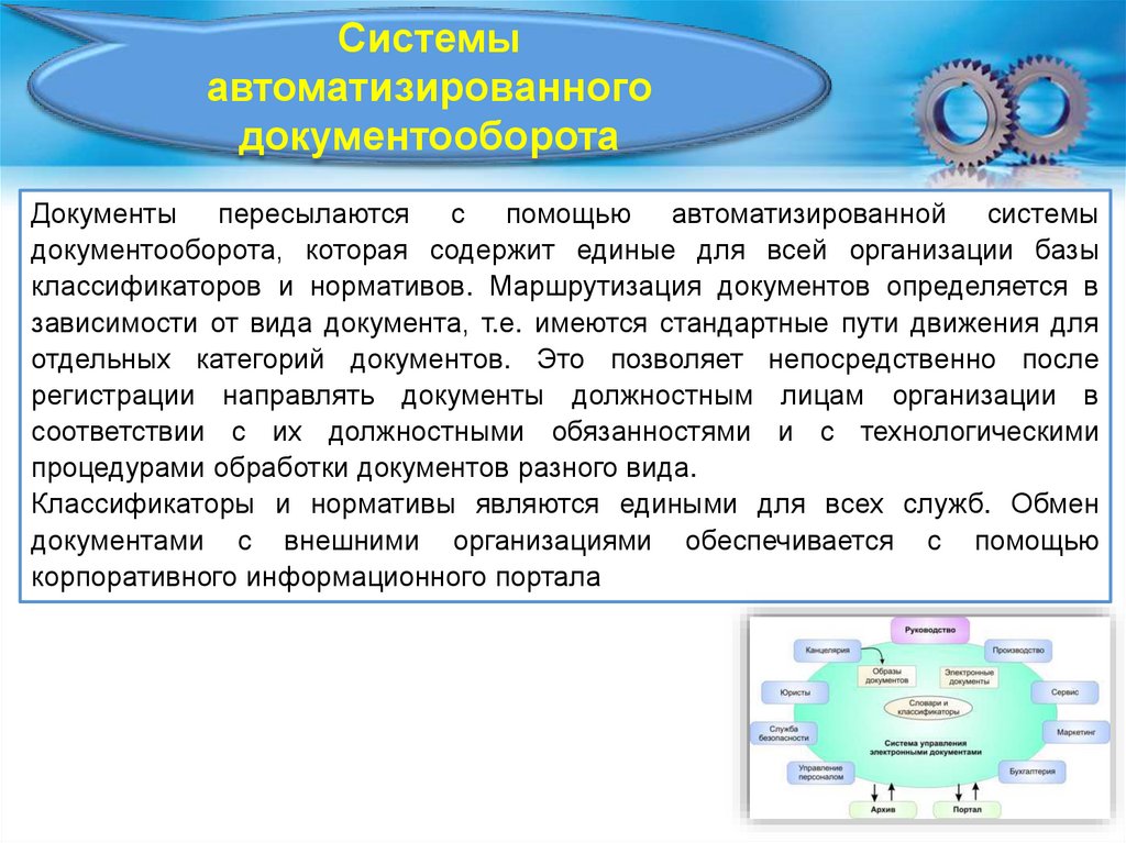 классификаторов и нормативов. Маршрутизация документов определяется в