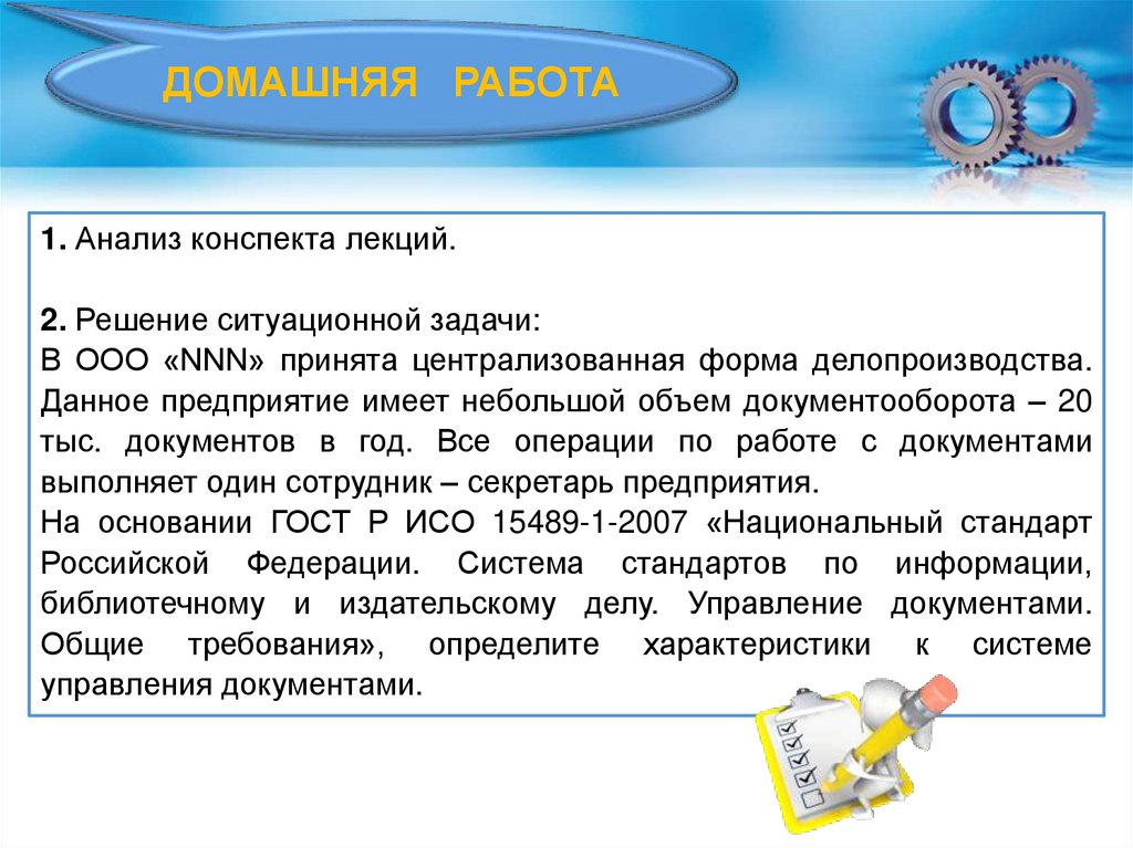 ДОМАШНЯЯ РАБОТА1. Анализ конспекта лекций.