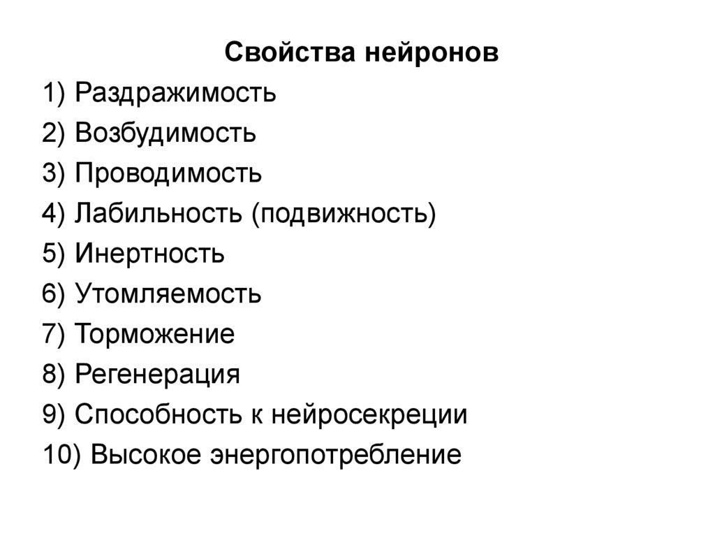 Свойства нейронов1) Раздражимость