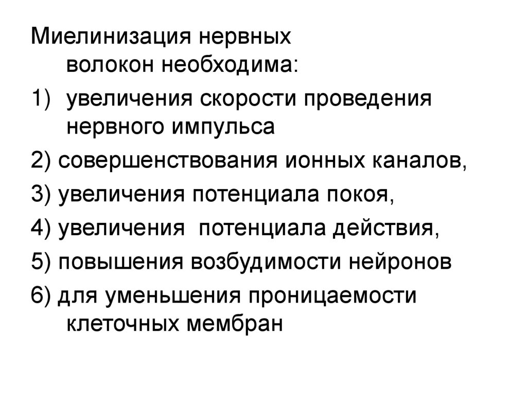 Миелинизация нервныхволокон необходима: