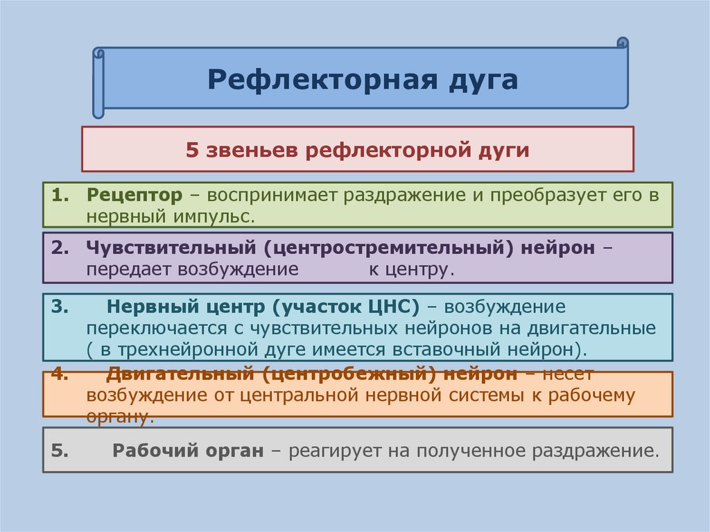 Рефлекторная дуга5 звеньев рефлекторной дуги